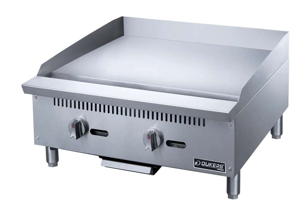 Griddle, gas, countertop, 24"W, 3/4" thick smooth polished steel, (2) burners, independent manual controls every 12", full length seamless drip pan, stainless steel construction, adjustable legs, 60,000 BTU, CSA-Sanitation, cCSAus (Configured for Natural Gas, LP Conversion Kit Included)