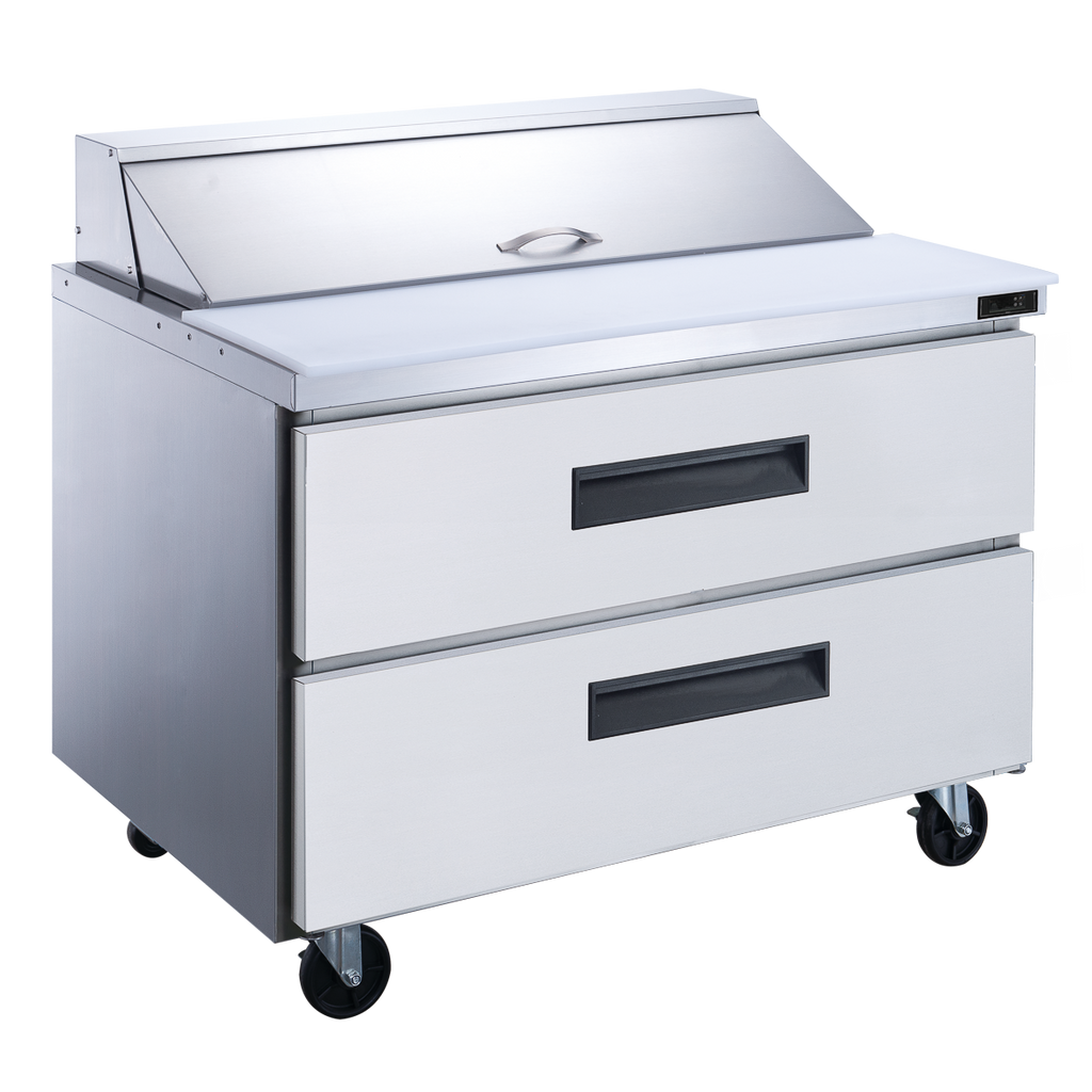 Mega Top Sandwich/Salad Prep Table with Drawers, 36"W, bottom mount self-contained refrigeration, digital temperature control, 34°F (1°C) to 47°F (8°C) temperature range, automatic defrost, (2) self-closing drawers, (15) 1/6 size pans (included), stainless steel interior & exterior, 5" casters (2 braked), R290 refrigerant, 115V/60/1-ph, cETLus, ETL-Sanitation