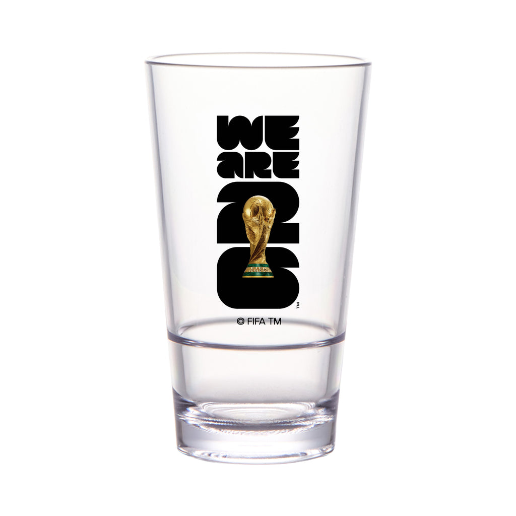 FIFA Stackable Pint Glass, 16 oz (16.45 oz rim-full), 3.3" dia. x 5.75" H., World Cup Trophy logo (24 each per case) (Item cannot be co-branded with a logo) (Minimum order quantities (MOQ) may apply) (NET, no additional discounts available)